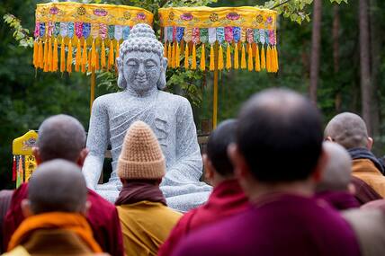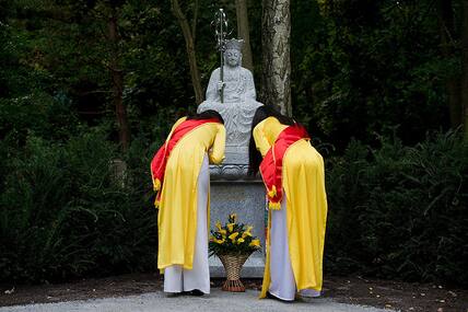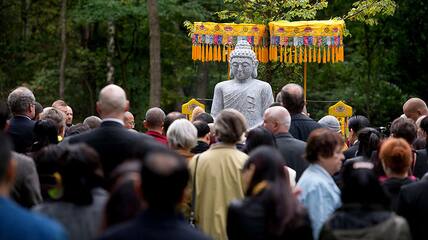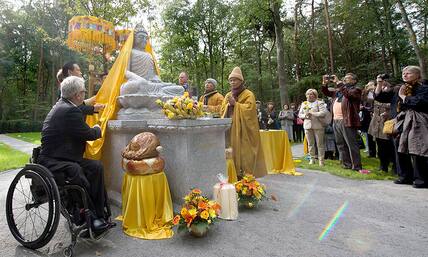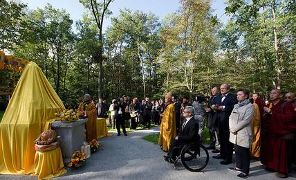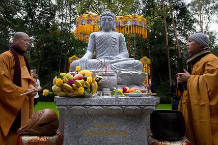 Zum ersten Mal in der fast 1000-jährigen Geschichte Sachsens wurde eine buddhistische Grabstätte geweiht. Die Stadt Dresden hat dafür 2000 Quadratmeter unberührte Fläche zur Verfügung gestellt, die auch mit Spenden der buddhistischen Weltgemeinde gestaltet wurde. Fotos: Arno Burgi, dpa